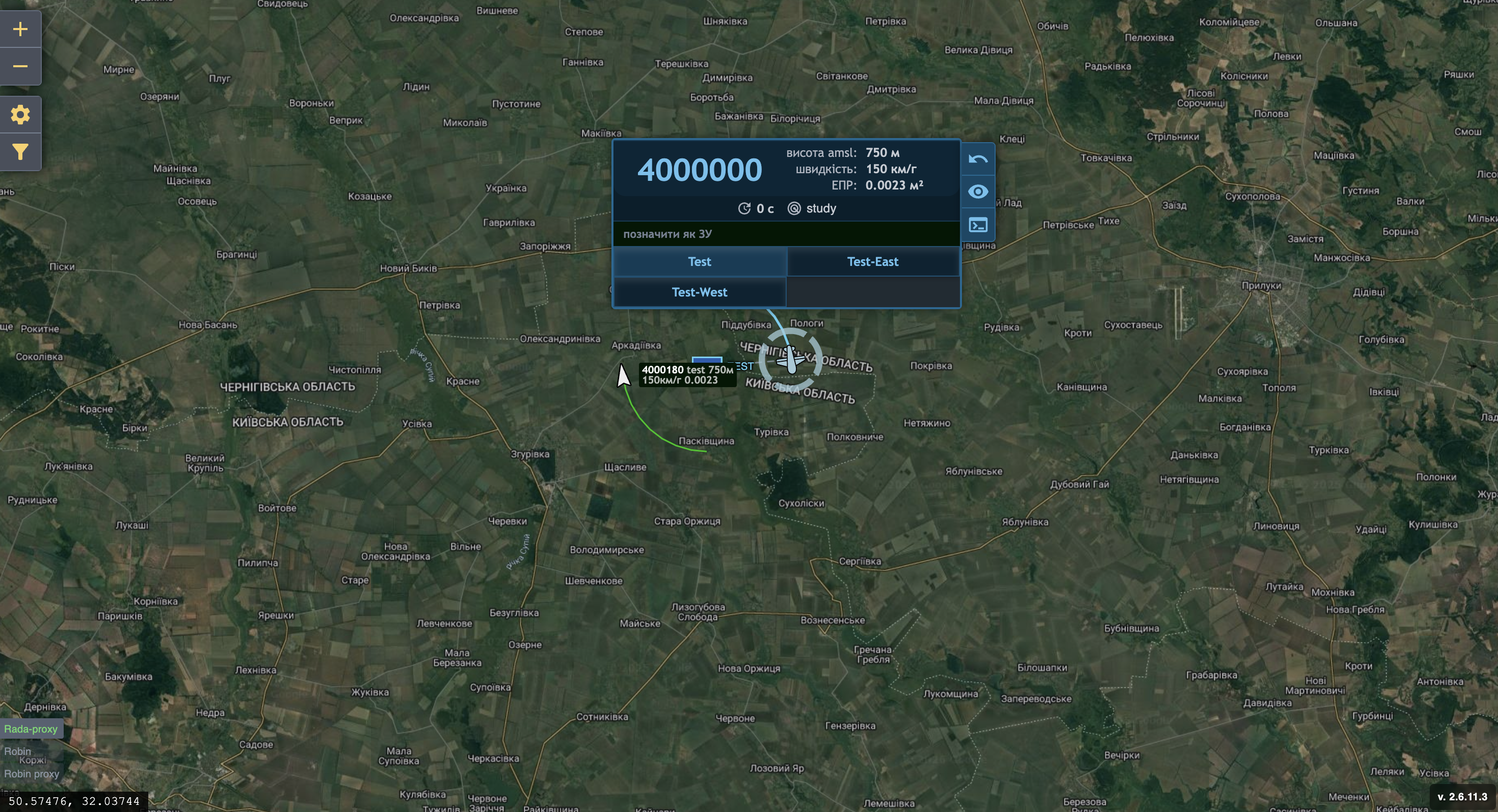 Створення цілей у SkyHunter через сервіс Skymap використовується для моделювання повітряної обстановки, навчання операторів або тестування алгоритмів перехоплення.